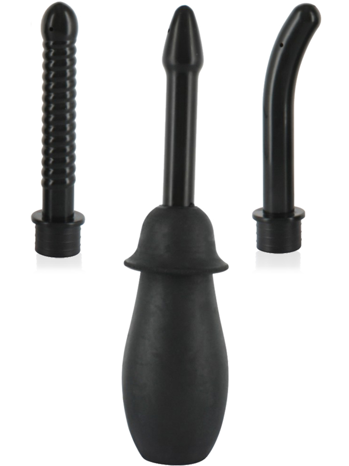 Komfortables Anal Dusche Set mit drei austauschbaren Aufsätzen. Wähle den für dich passenden Aufsatz und genieße herrlich feuchte Spielchen. Das Set ist aus Gummi und Plastik hergestellt.