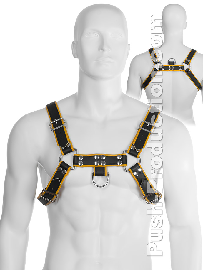 Echtledergeschirr BDSM Top Harness - Schwarz/Gelb
