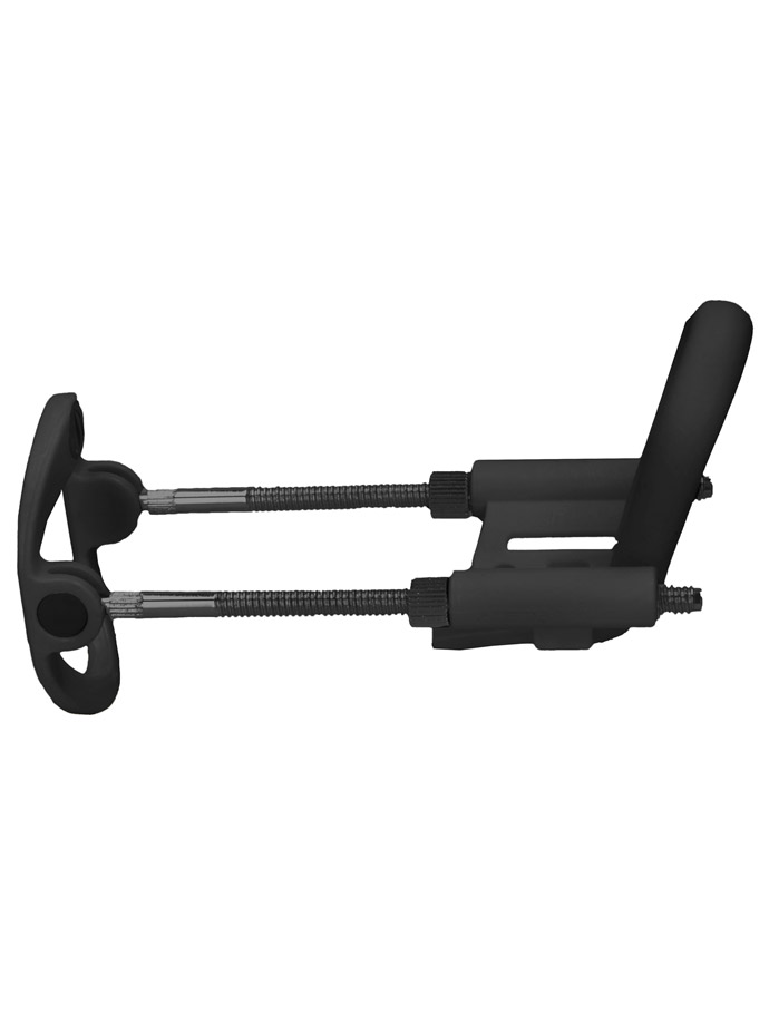 5 - When secure, fine tune the tension by turning the thumbscrews along the rods, adjust each rod until the desired tension is reached. It should give a slight feeling of discomfort but not cause pain. As you get more and more comfortable, you can increase the tension.